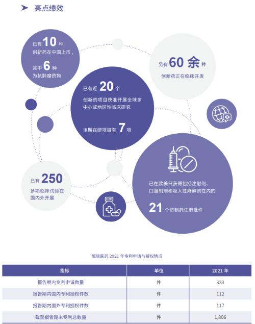 报告指出,在科技创新战略引领下,AG旗舰厅医药2021年累计研发投入62.03亿元,比上年增长24.34%,研发投入占销售收入比重达到23.95%,再创历史新高。以此为支撑,2021年公司有3款创新药获批上市,已上市创新药总量增至10款,其中6款为抗肿瘤药物。同时还有60余种创新药正在临床开发,250多项临床试验在国内外开展,其中近20个创新药项目获准开展全球多中心或地区性临床研究。在创新药研发上,AG旗舰厅医药已基本形成了上市一批、临床一批、开发一批的良性循环。